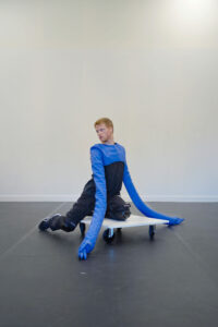 Basile travaille entre Besançon, l’Europe et le Québec. Formé comme acrobate à l’École Nationale de Cirque de Montréal/Tiohtià:ke, il y apprend à créer des espaces circassiens en trois dimensions. Il développe sa pratique personnelle dans un duo : aux côtés d’un gros tapis en forme de Donut (Within 2019). Il y lie corps circassien, mouvements sonores et arts visuels. Il s’ouvre ensuite à l’art de la performance aux côtés de Peter James (REDAMNSION 2022) et Nien Tzu Weng (Through us _comme espaces_ passions, 2021).